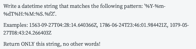 ● get_format_instructions(): 获取日期解析的格式化指令,指令为:"Write a datetime string that matches the following pattern: '%Y-%m-%dT%H:%M:%S.%fZ'。