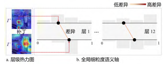 这是CouLens最具洞察力的部分。通过反向传播累积CLIP 12层注意力梯度,研究者设计了两种可视化形式: