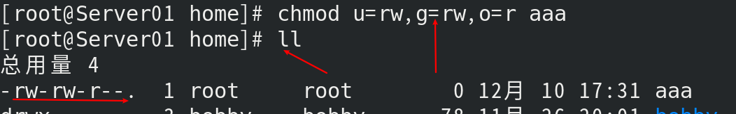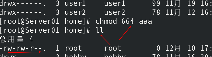 - 为文件/etc/file设置权限:赋予拥有者和组群成员读取和写入的权限,而其他人只有读取权限。则应该将权限设为"rw-rw-r--",而该权限的数字表示法为664,因此可以输入下面的命令来设置权限: