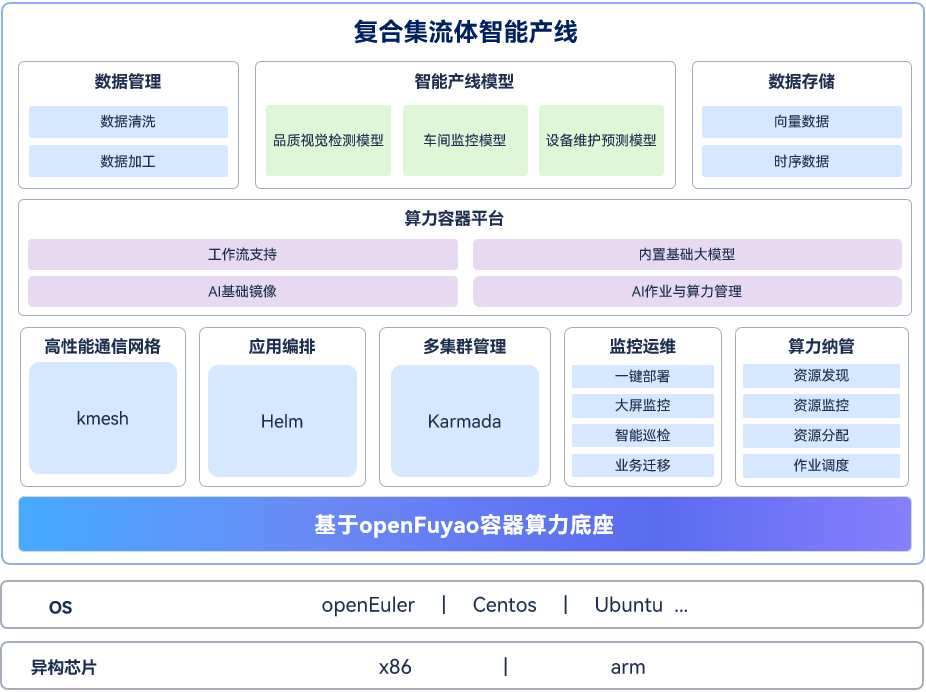 优化路径: 基于openFuyao国产最强算力调度底座,算力,算法,数据三位一体,构建复合集流体智能产线系统。