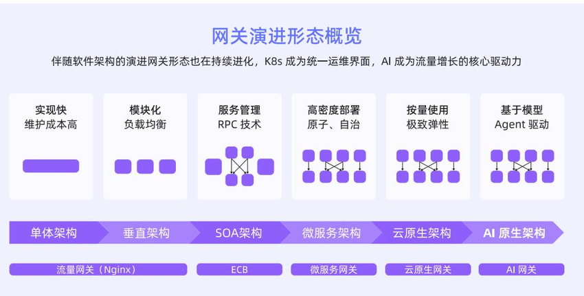 传统 Web 应用当中普遍使用的 Nginx 网关、难以应对以上新需求,例如配置变更时需要 Reload、导致连接断开,不具备安全防护能力等,因此国内外均出现了大量基于 Envoy 为内核的新一代开源的 AI 网关,AI 网关作为新一代 API 网关,承载多模型流量调度等关键能力,比如阿里巴巴开源的 Higress 网关,在阿里巴巴的内部实践当中、Higress 已经作为了千问 App 的流量网关,Higress 提供了 AI 业务下的网关流量接入。