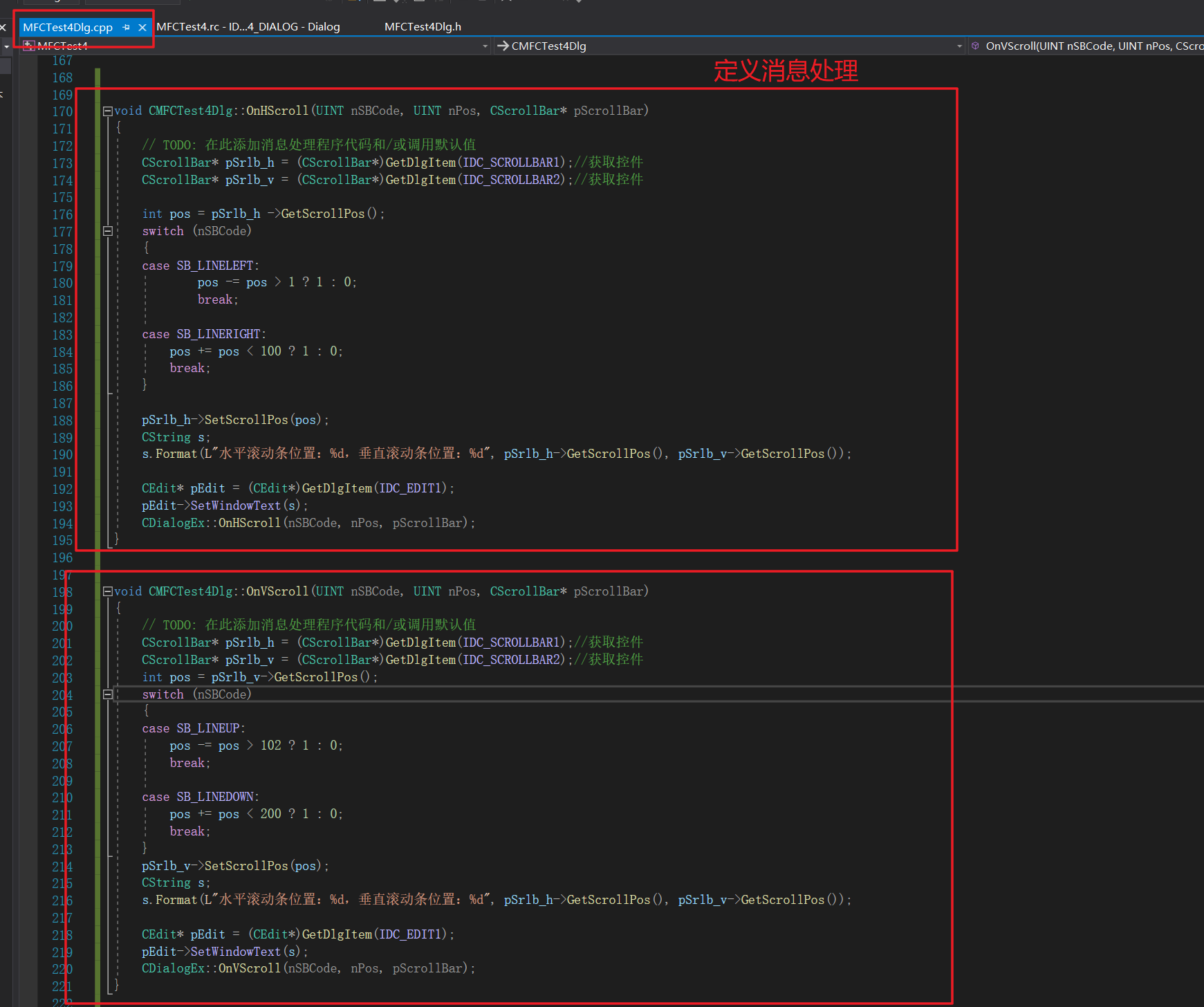 void CMFCTest4Dlg::OnVScroll(UINT nSBCode, UINT nPos, CScrollBar* pScrollBar)