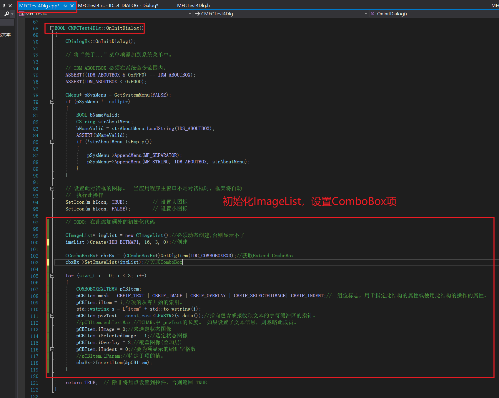 cbxEx->SetImageList(imgList);//关联ComboBox