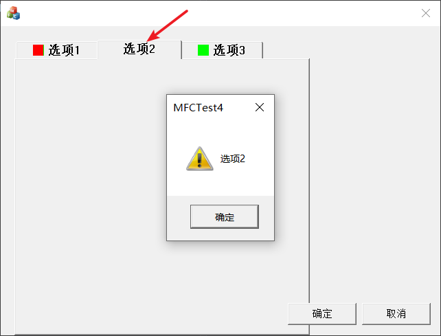 pTab->InsertItem(1, L"选项2");//在现有选项卡控件中插入新选项卡。