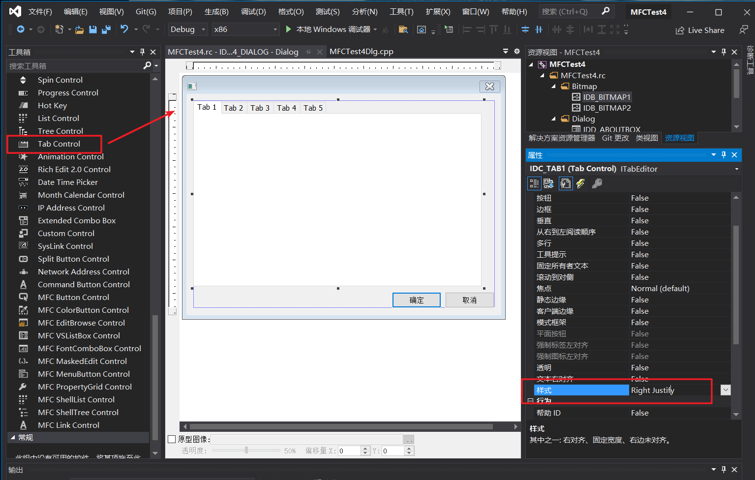 pTab ->Create(WS_CHILD | WS_VISIBLE| TCS_TABS| TCS_FIXEDWIDTH, CRect(20,20,450,450), this, IDC_TAB1);