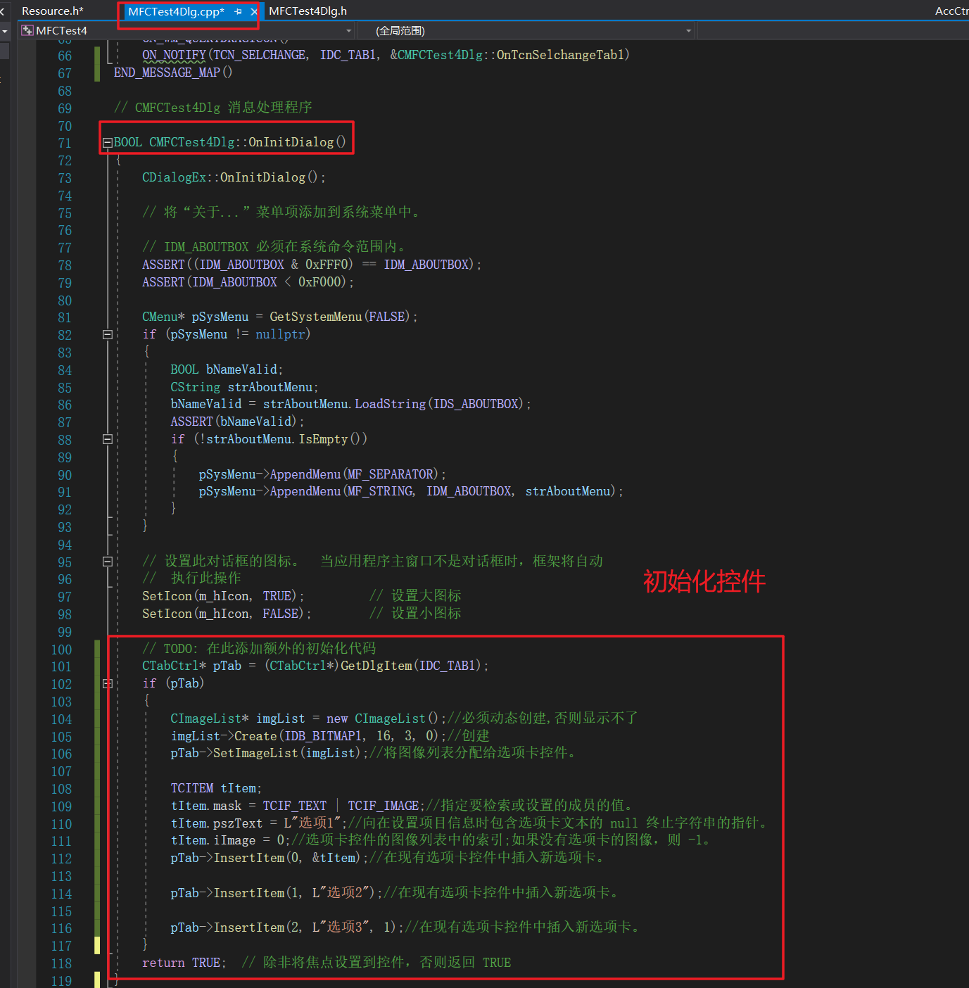 pTab->InsertItem(0, &tItem);//在现有选项卡控件中插入新选项卡。