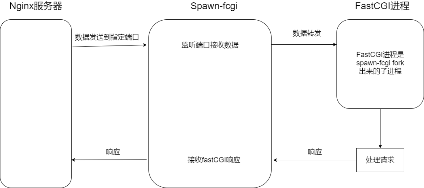 问题:Nginx下fastCGI与服务器是分离的,就是Nginx无法直接调用fastCGI,需要用spawn-fcgi来管理