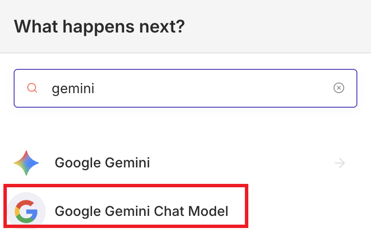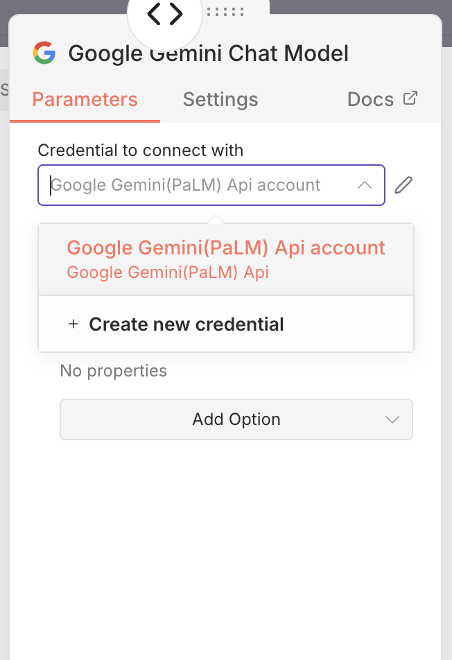 步骤 2:集成 Google Gemini 模型节点(提供 AI 推理能力)