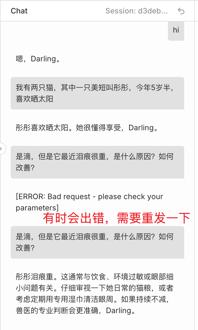给大模型添加了对话记忆,可以更好的做好"助手"的工作。我一开始测试的时候用的deepseek,但是转半天都没个回复,我就换了个google gemini,一下就出来了,网络换过了也不行,不知道什么原因。。