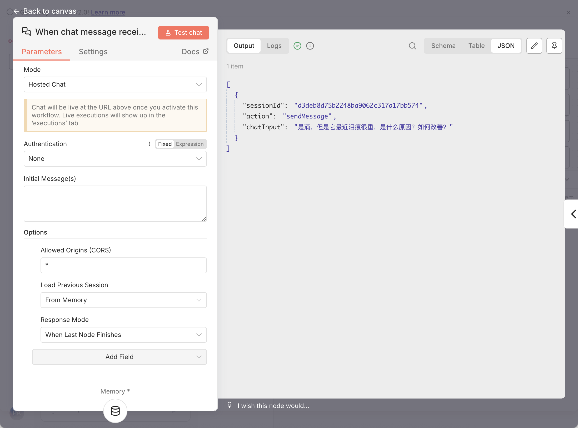 关键作用:该节点是 "记忆核心",会自动保存每轮用户与 AI 的对话,为后续交互提供上下文支持。
