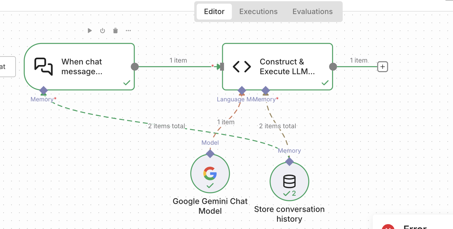 大模型"对话记忆" 是实现自然交互的核心 ------ 没有记忆的 AI 只能单次应答,而带记忆的 AI 能理解上下文、连贯回应。本文将以 n8n 为可视化工具,分步骤教你用 LangChain+Google Gemini 构建具备对话记忆功能的自定义 AI 助手,全程实操可复现。