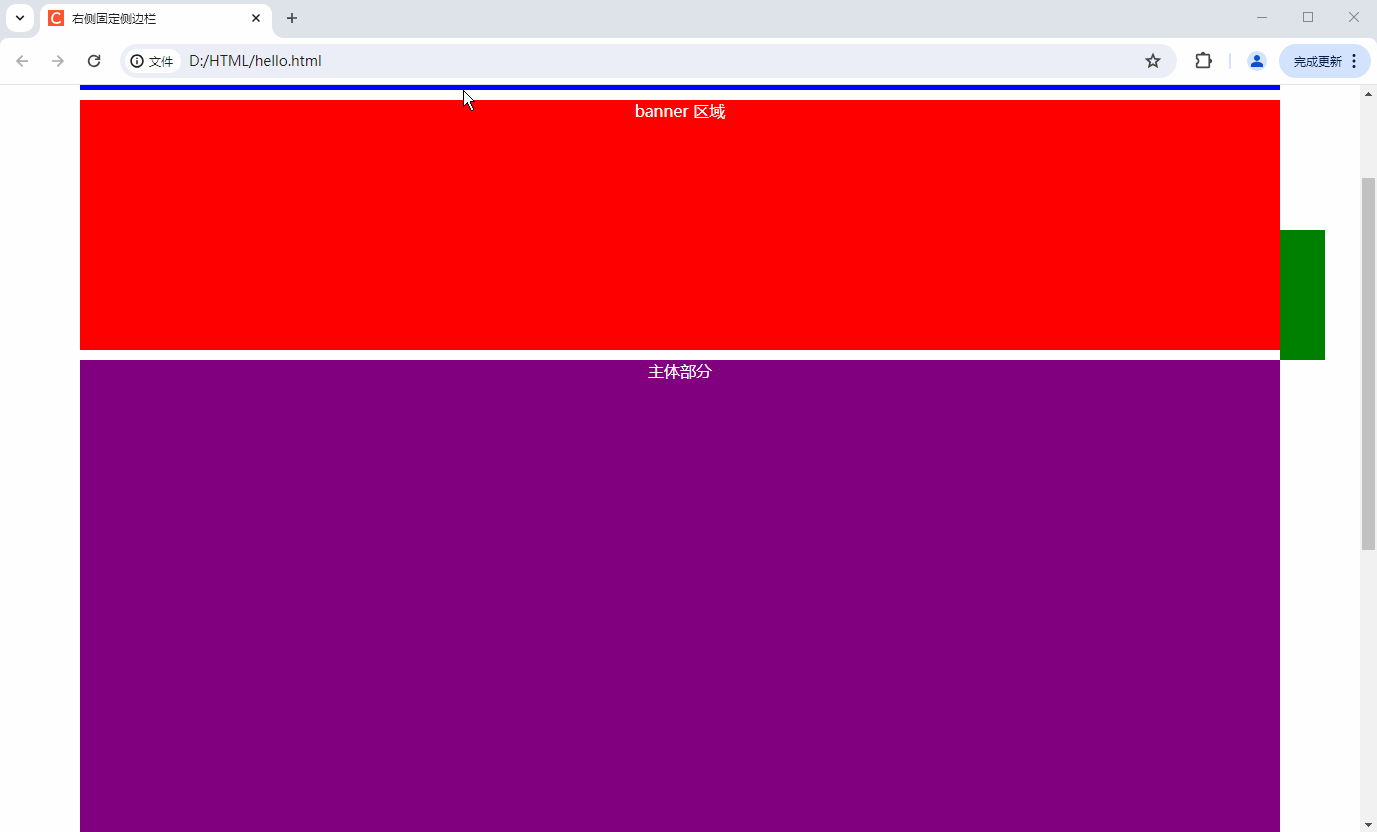 向上滚动页面 , 开始时 " 右侧固定侧边栏 " 是固定定位 , 当页面向上滚动时 , 主体部分刚显示时 , 由 固定定位 变为 绝对定位 ;