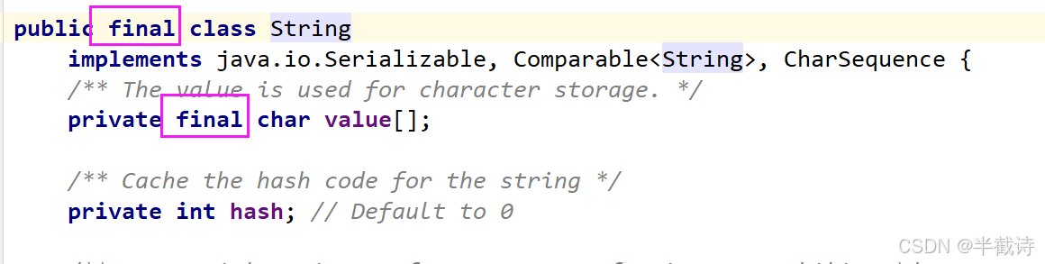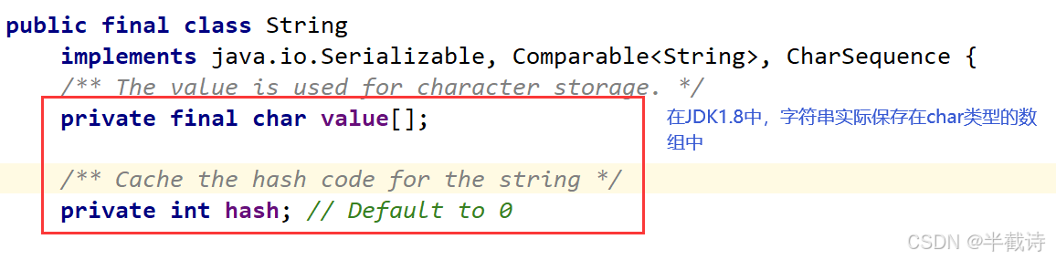 String是引用类型,内部并不存储字符串本身,在String类的实现源码中,String类实例变量如下:
