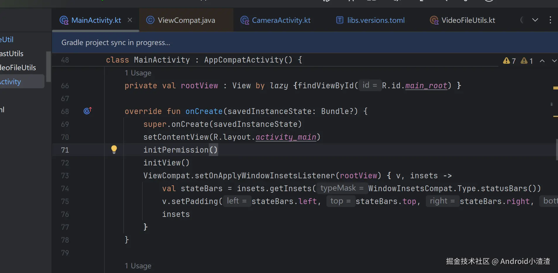 最近10月初把公司的项目升级到了Android15,但是发现了很多问题,这这其中最恶心的是Android15EdgeToEdge适配 ,因为这个所有界面都要修改,之前的导航栏和状态栏都失效了,今天是讲解CameraX升级15的过程,直接上代码。