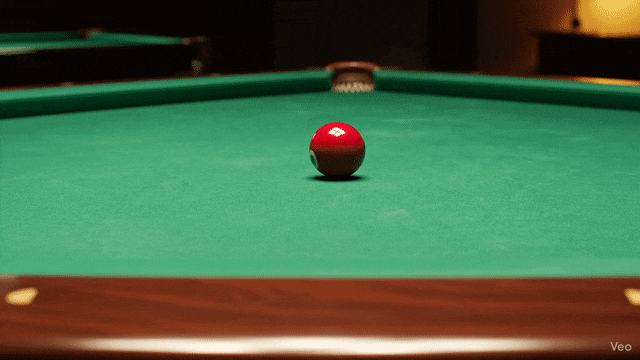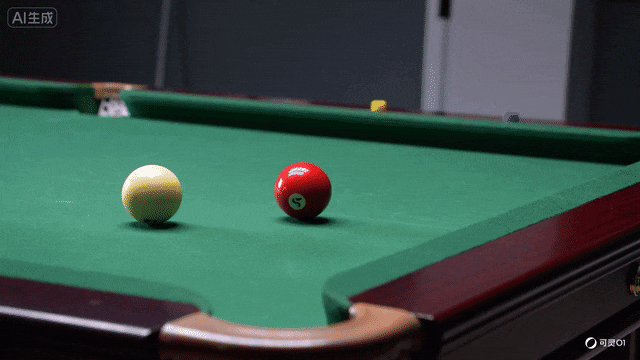 但在物理规律的测试上,可灵的表现和Veo 3.1还有一些差距。比如,我们在测试中要求在台球桌上通过击打白球,使红球掉入口袋。对比两者给出的效果来看,虽然Veo 3.1没有让红球落到口袋里,但基本遵循了指令;但可灵o1仅仅给出了两球碰撞的效果,对指令的遵循上效果不够理想。
