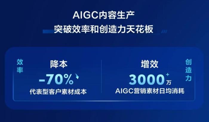 针对这个问题,快手通过AIGC内容生产来实现降本。其中,可意大模型负责文字素材的输出,可图生成AI图片,可灵支撑短视频广告营销;女娲数字人直播等AI产品则用来满足多元化素材的需求。快手官方数据显示,AIGC内容生产可以将素材制作成本降低70%。