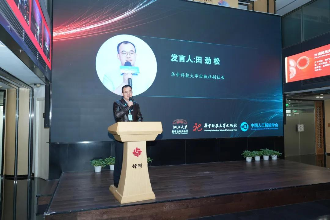 论坛伊始,浙江大学数字法治实验室主任、《法律与人工智能》主编熊明辉教授主持开场,介绍参会嘉宾并概述会议议程。随后,华中科技大学出版社副社长田劲松代表主办方致辞并发表主题演讲。他期望通过本次论坛及《法律与人工智能》系列专辑的出版发行,为法律与人工智能研究领域提供一个全面且深入的视角,为该领域的法律人工智能研究者及应用者搭建一个融合交流的平台,为理论界与实务界开辟一个相互了解的窗口。