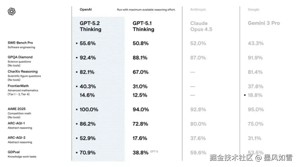 如果你还记得上个月谷歌Gemini 3发布时带来的震撼,那你大概能理解OpenAI内部那种"红色警报"的紧迫感。GPT-5.2就是在这种高压环境下诞生的产物。这次没有那些虚头巴脑的炫技,OpenAI把所有的技能点都点在了一个最务实的方向上:让专业的人,干活更快。