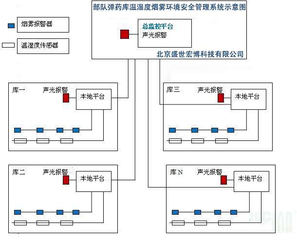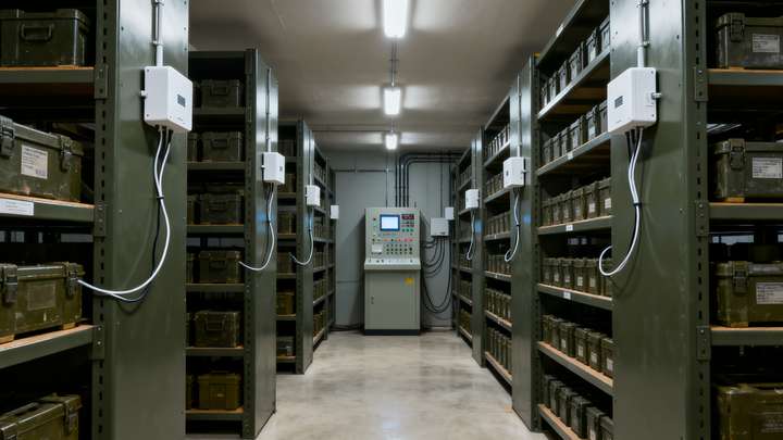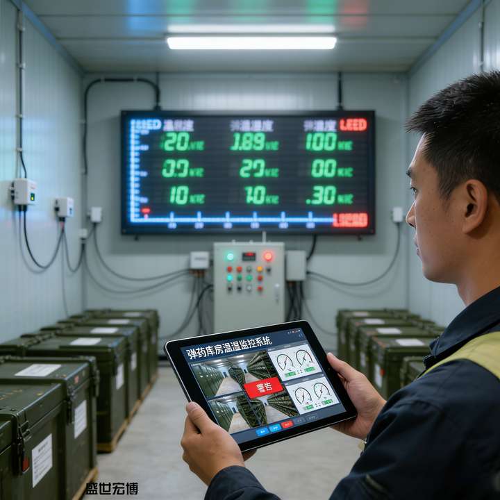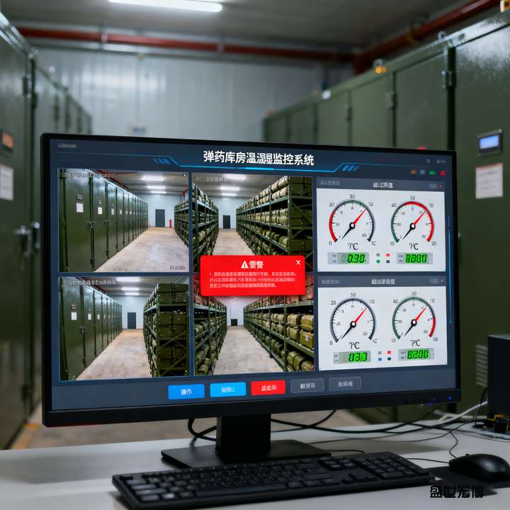 弹药库房存储的弹药、火工品等物资对温湿度环境具有严格要求(参考国家《弹药安全管理条例》:温度 15-25℃,相对湿度 45-65% RH),温湿度超标会导致弹药性能衰减、失效甚至引发安全风险。传统人工巡检存在效率低、误差大、无法实时预警等问题,亟需建设自动化、智能化的温湿度监控系统。