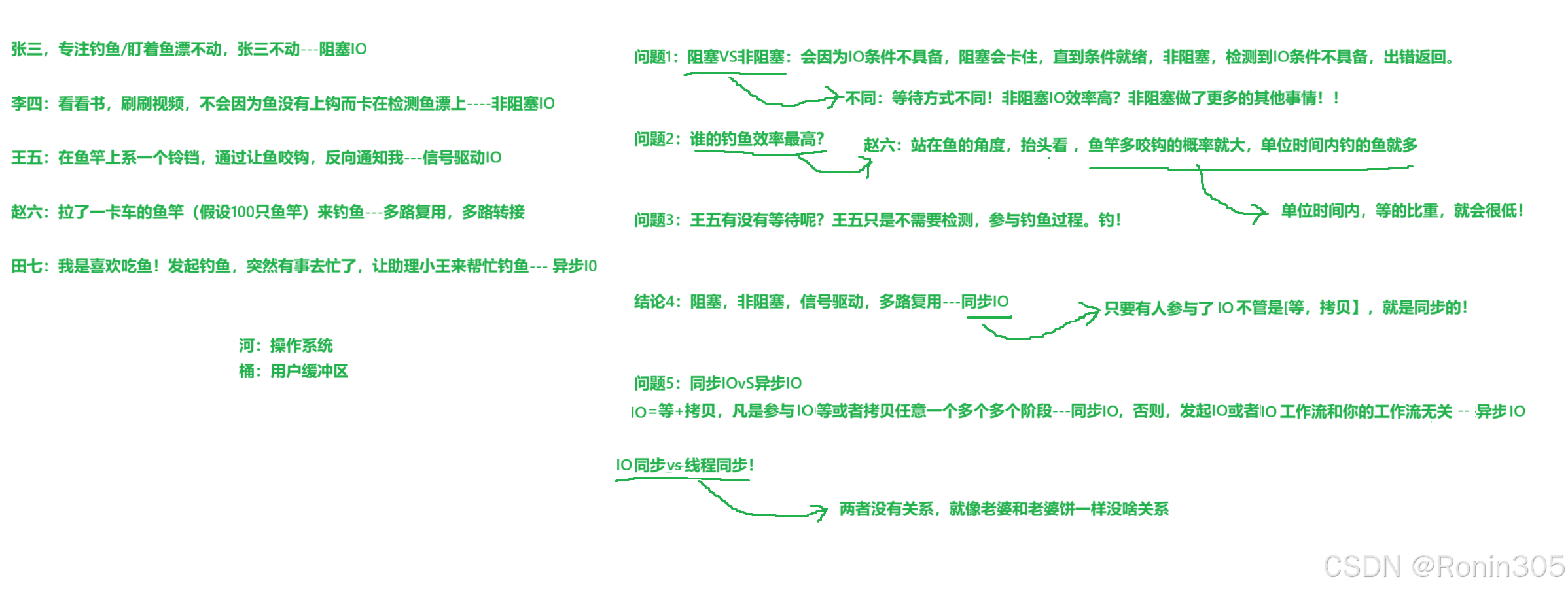 所以下面我们来通过钓鱼的例子将五种IO模型都串联起来介绍,帮助我们更深刻理解五种IO模型