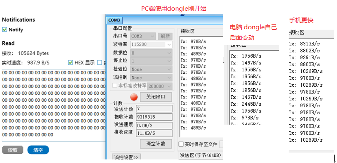 实际上在博主刚开始学习的时候,当时没有注意到需要主机从机配合使用,直接使用了 PC 和 手机连接 蓝牙的测速从机,速度都大打折扣。