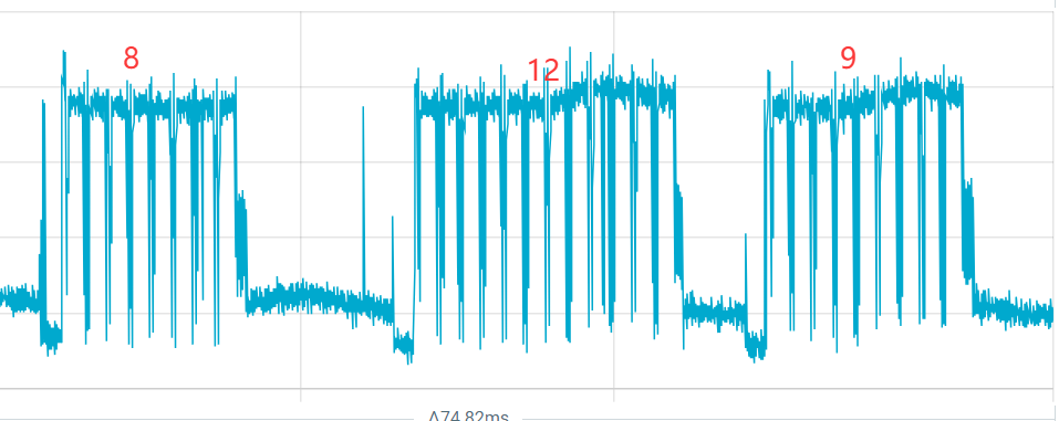 我们还可以通过功耗仪,看一看从机发送的情况:
