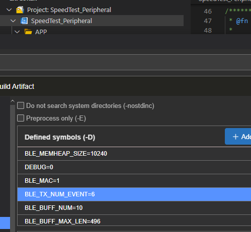 这个BLE_BUFF_MAX_LEN 是 CONFIG.h 中定义的,我们可以通过 IDE 配置定义: