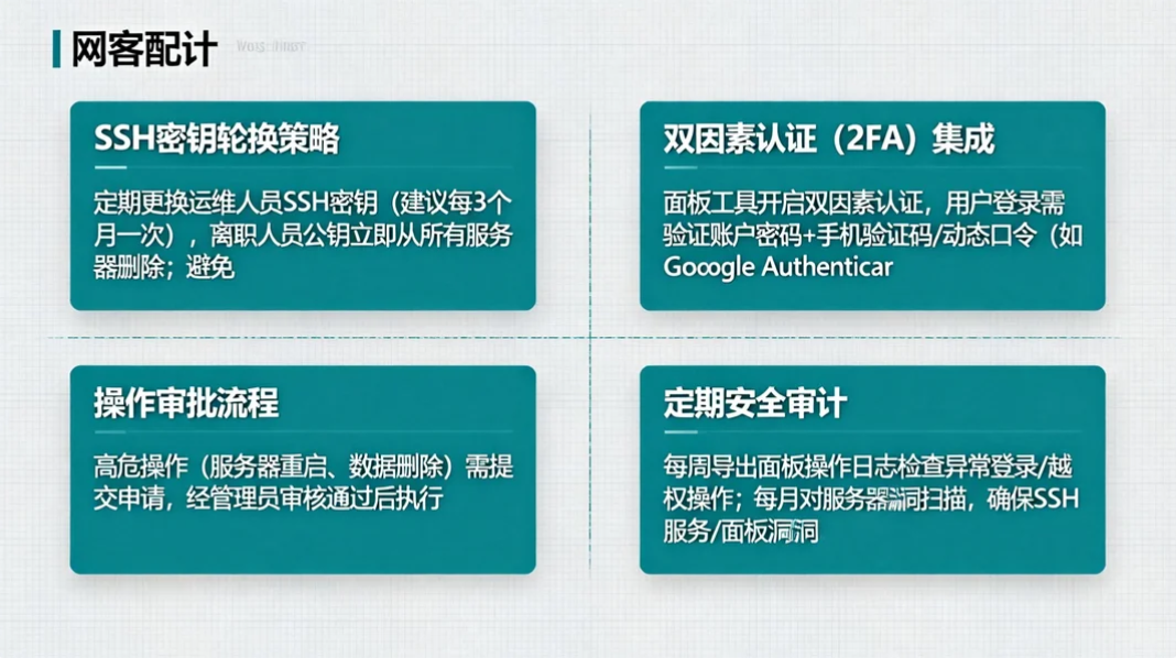 基于面板工具的多机管理方案,需配合以下最佳实践,进一步提升安全性:
