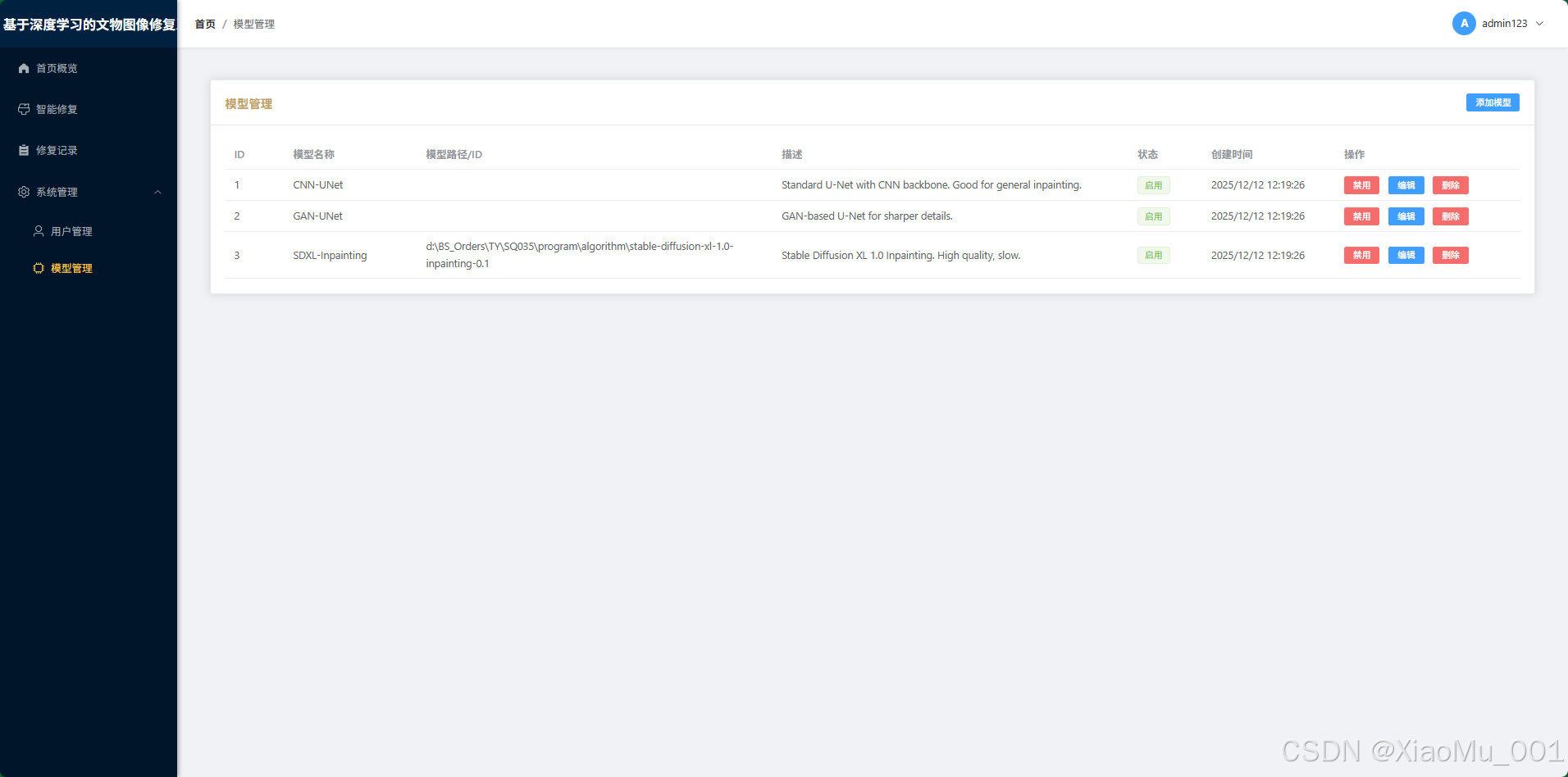 模型管理 :无需重启服务器,在线添加新的算法模型权重路径,即刻生效。
