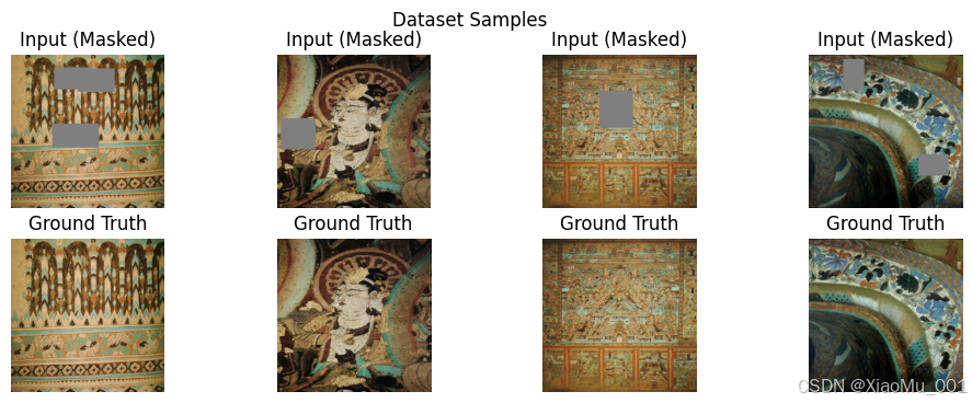 - 掩码区域像素被置为 0(黑色)或噪音,模拟文物缺失。
