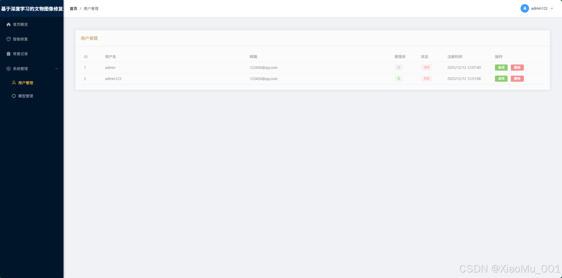 ImageField | Nullable | 算法生成的修复结果图片路径 |