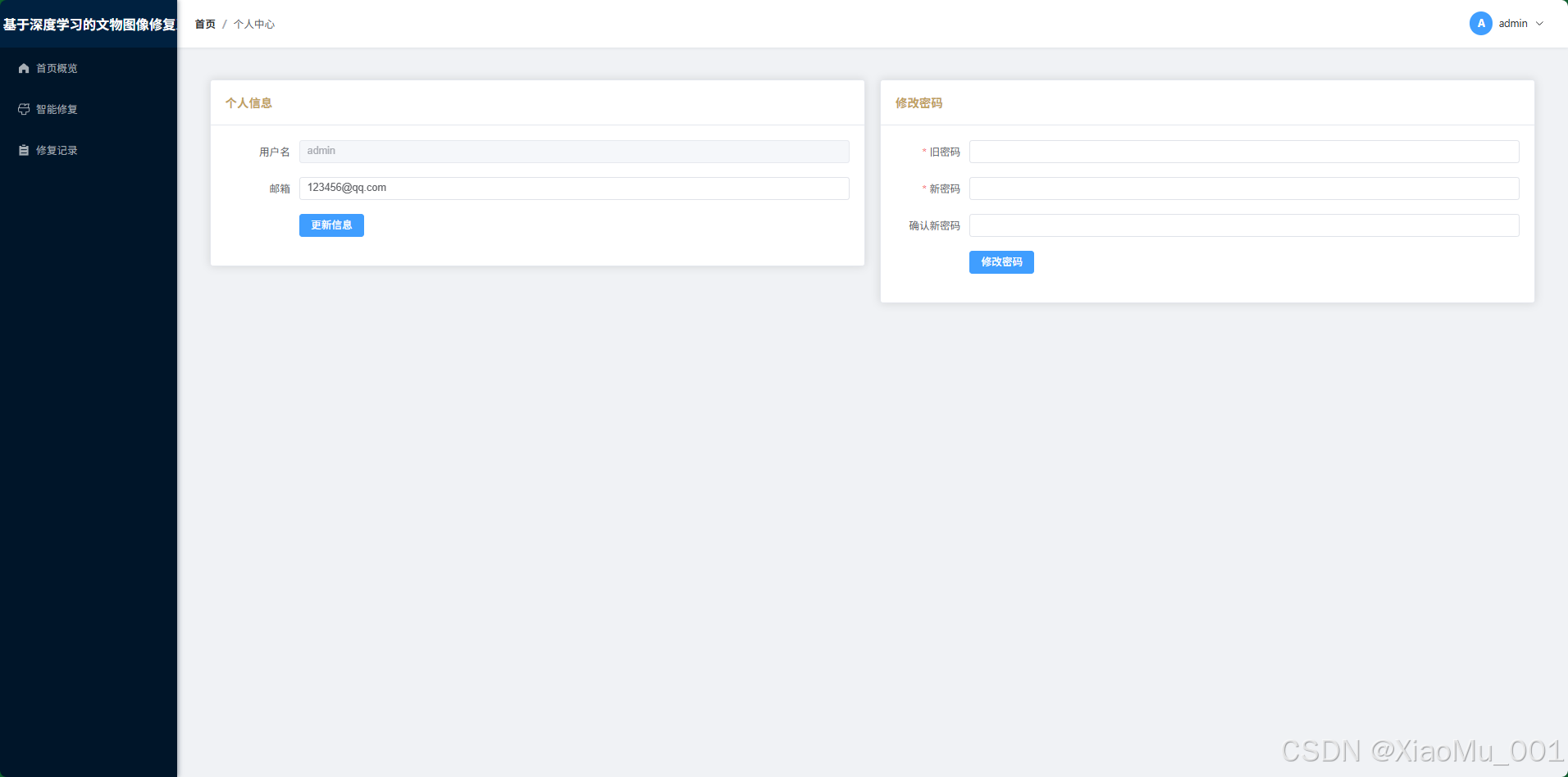 - 顶部导航栏:常驻显示,包含"智能修复"、"修复记录"、"个人中心"等入口。