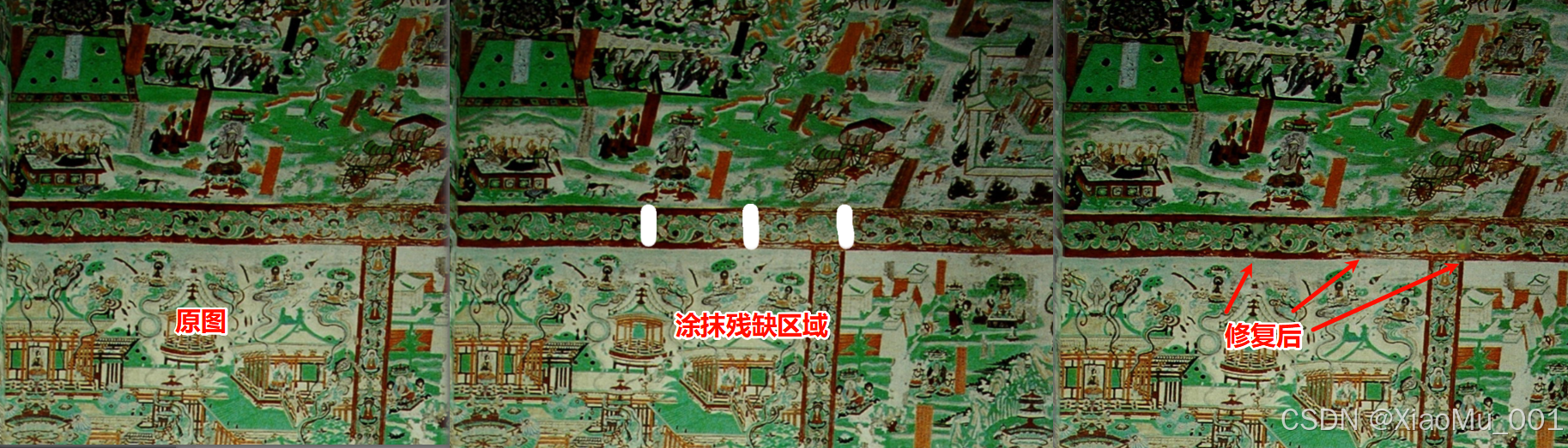 - 输入与输出:模型的输入是"受损图像"和"掩码",目标是输出与"完整图像"尽可能一致的结果。