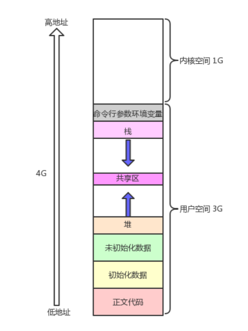 不难发现:堆地址递增(向上长),栈地址递减(向下长),符合布局规律。