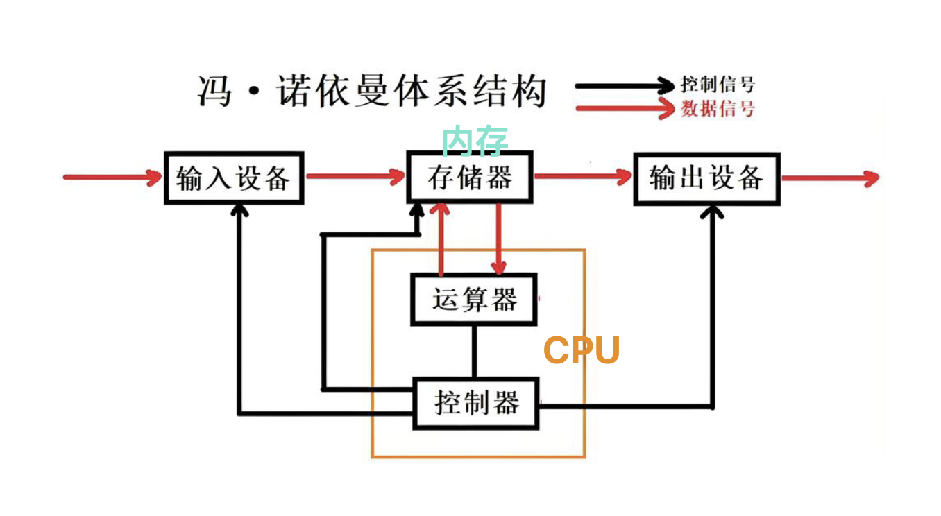 所有现代计算机(如笔记本、服务器等)都遵循冯诺伊曼体系结构,核心是"所有设备只和内存打交道",CPU不能直接访问外设。