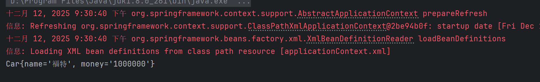 Car car = (Car) context.getBean("car");