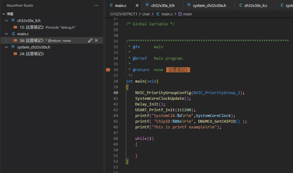 今天给大家分享一下MounRiver® Studio Ⅱ(MRS2)的代码书签与笔记功能: