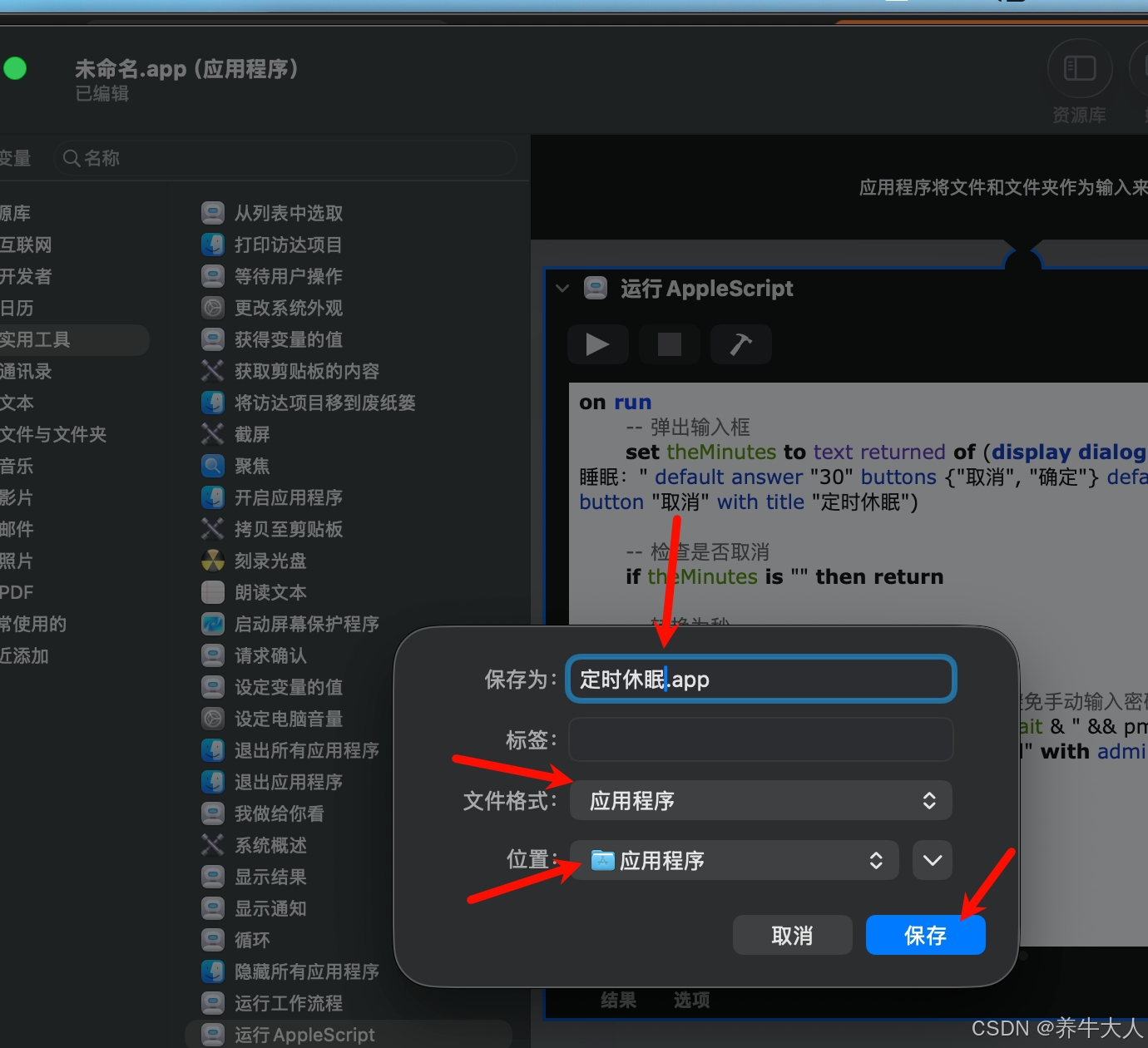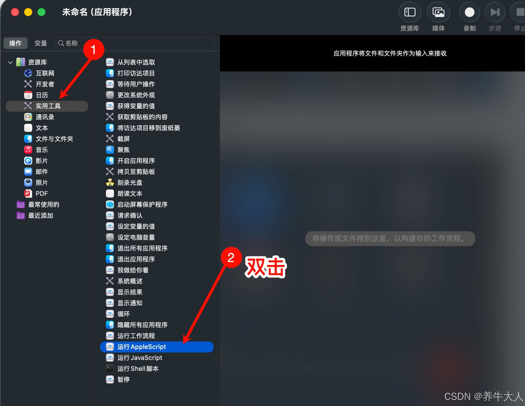 3.接着选择实用工具-运行AppleScript