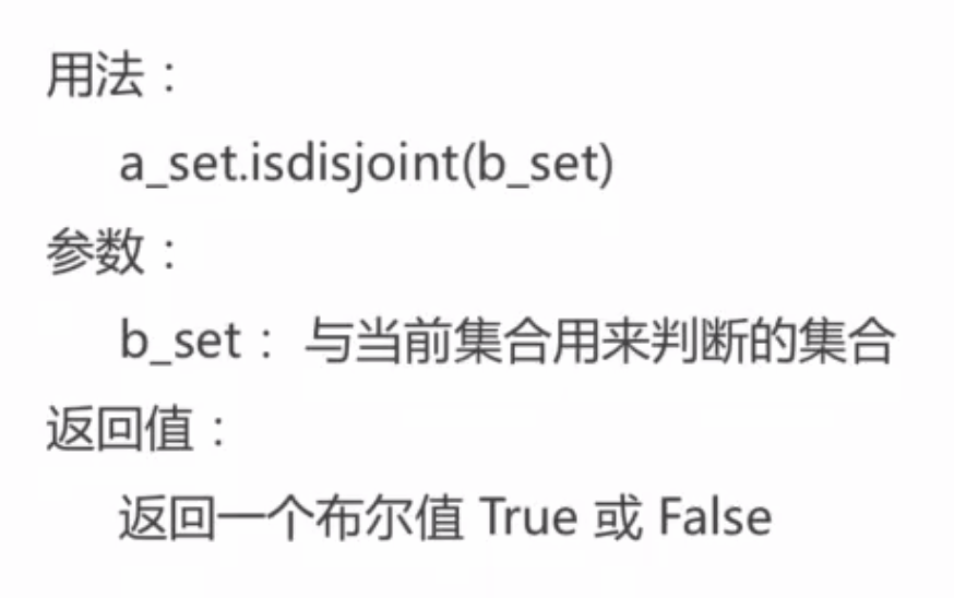 功能:判断两个集合是否包含相同的元素,如果没有返回Ture,有则返回False