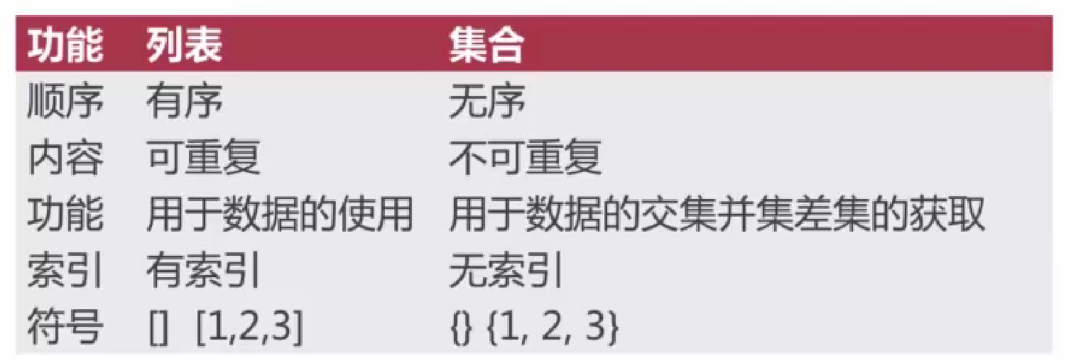 - 集合知识用来处理列表或者元组的一种临时类型,不适合存储与传输