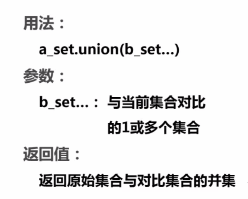 加入一个新的集合(或者列表、元组、字符串),如果新的集合内的元素在原集合中存在则无视