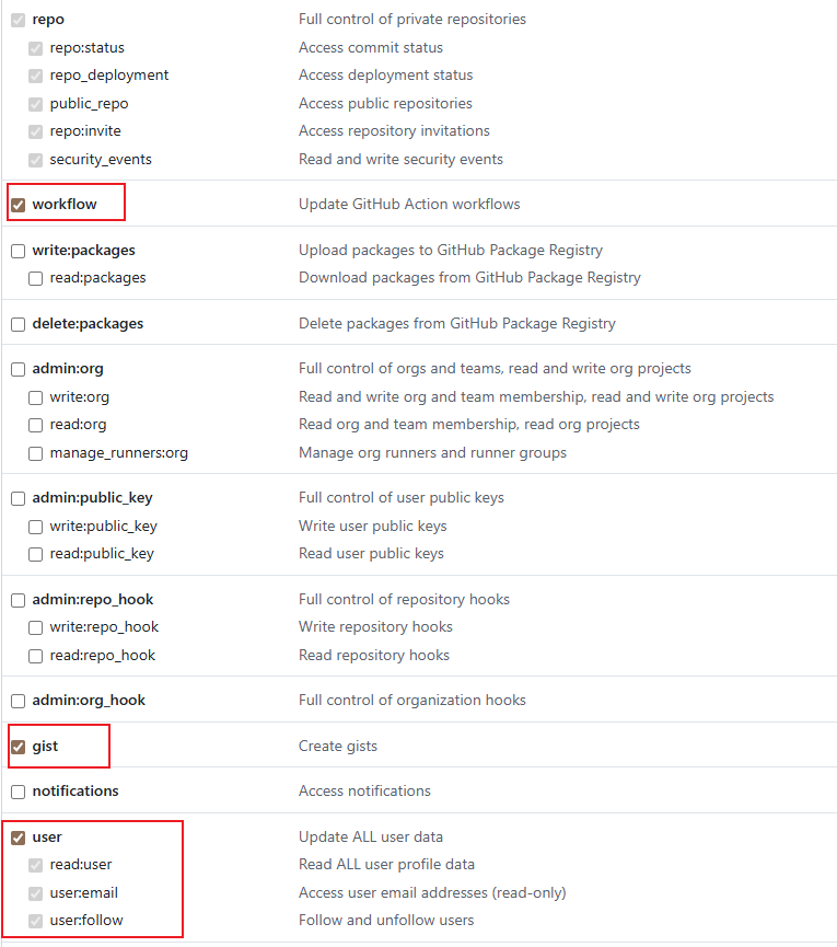 - 勾选完成后,点击最下面的Generate token,就会获得一个新的Token