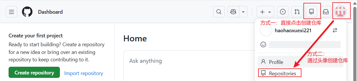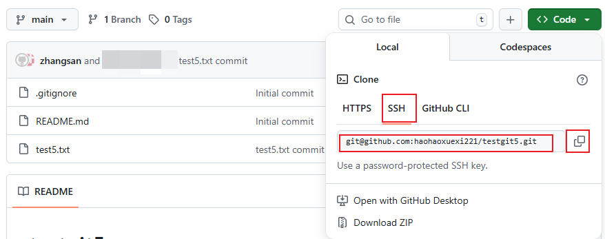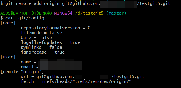 - 根据上述步骤创建远程仓库和本地仓库testgit5。