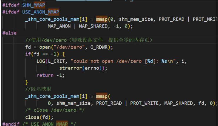 MAP_ANON:创建匿名内存区域,不与任何文件关联;/dev/zero:特殊设备文件,提供全零的内存页