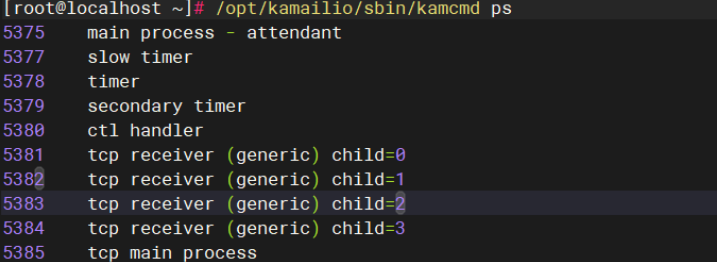 通过"/opt/kamailio/sbin/kamcmd ps"查看kamailio的多进程