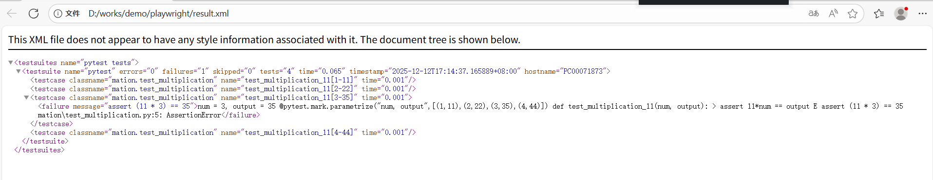 > pytest .\mation\test_multiplication.py -v --junitxml="result.xml"