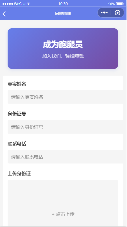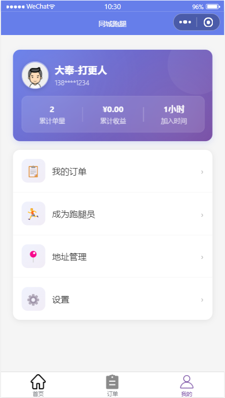 - 跑腿员功能 :申请成为跑腿员、接单中心、我的订单