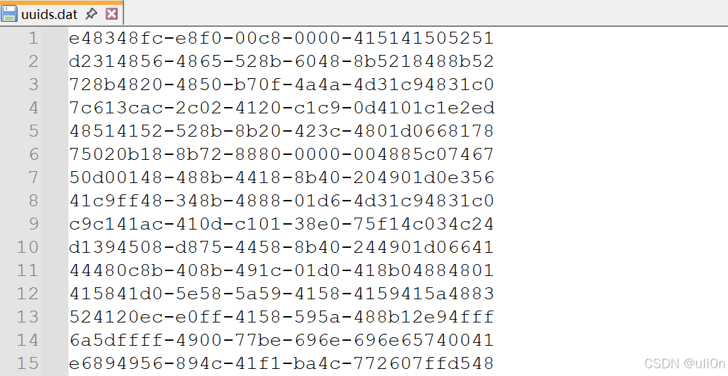 - 我们可以将ShellCode转换为UUID,让其加载到内存,UUID(通用唯一识别码)是用于计算机体系中以识别信息数目的一个128位标识符,根据标准方法生成,不依赖中央机构的注册和分配,UUID具有唯一性。