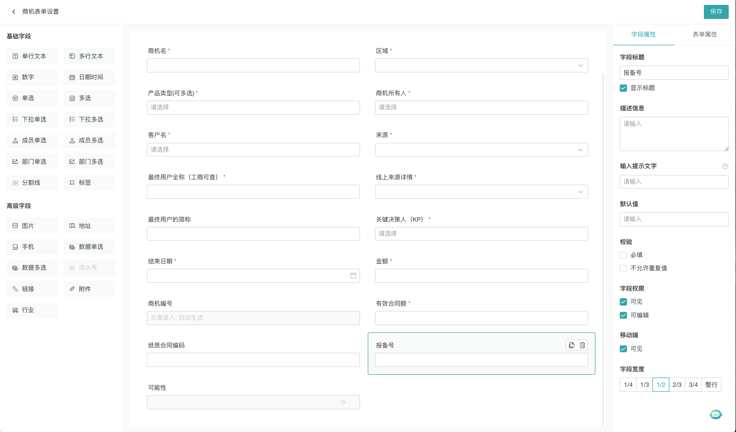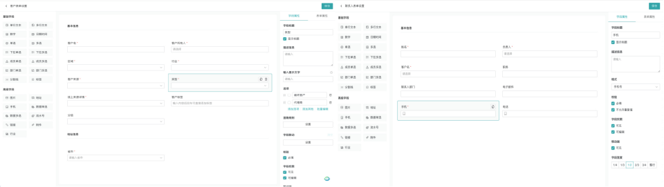 客户管理主要围绕潜在客户以及联系人进行管理,主要包含客户和客户联系人的基本信息录入,参见如下表单设置。